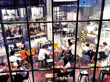 คาเฟ่เท่ๆ ที่เปิดเพลงเบาๆ และเปิด 24 ชั่วโมงเอาใจคนนอนดึก มาในคอนเซ็ปต์ “Ideas Happen Here” ด้วยการจัดพื้นที่ต่างๆ สำหรับการคิด ค้นหาไอเดียใหม่ๆ ของหนุ่มสาววัยทำงานและติวหนังสือสำหรับวัยรุ่นวัยเรียน ร้านตกแต่งด้วยสไตล์ Modern Loft มีหลากหลายมุมให้เลือกนั่ง รวมถึงห้องประชุมดีไซน์เก๋ที่จุคนได้ 6 – 7 คน นอกจากนี้ยังมีอาหารรสชาติอร่อยที่เป็นเอกลักษณ์เฉพาะที่ทางร้านคิดค้นสูตรขึ้นมาเองและเครื่องดื่มรสเยี่ยมที่คัดสรรวัตถุดิบมาอย่างดี