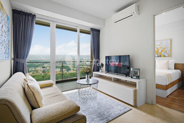 อพาร์ทเมนท์, 2 ห้องนอน, วิวเมือง | บริเวณนั่งเล่น | สมาร์ททีวี 43 นิ้ว พร้อมช่องเคเบิล, Netflix, บริการสตรีมมิ่ง