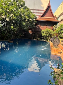 The Rose Hotel Bangkok offers a quiet retreat near Lumphini Park. Enjoy gardens, an outdoor pool, WiFi, convenient laundry facilities, and notably helpful staff.