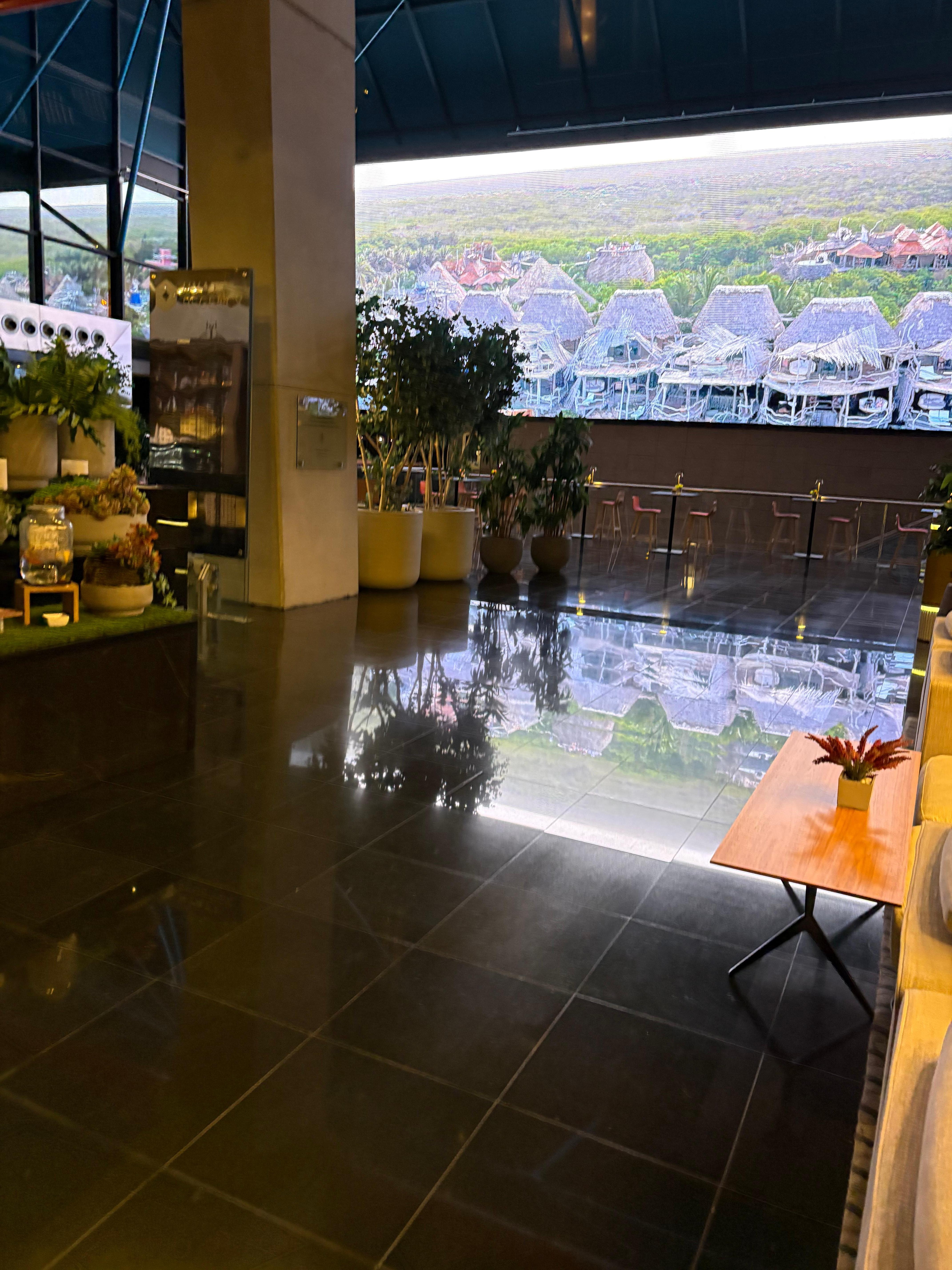 I stayed on the 21st floor. The room had a huge window with an amazing view of the city that went on for miles. Everything was well maintained and comfortable. The lobby was beautiful and striking with a giant flat screen TV. The breakfast was expansive and delicious, with excellent, friendly service. The nice & highly competent service extended to front desk staff as well. I’d recommend this hotel to anybody. Great place!
