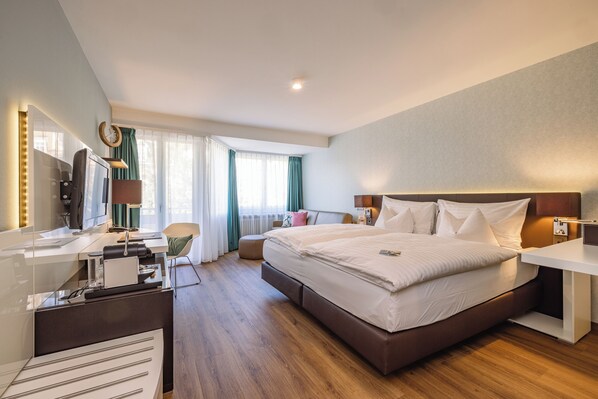 • 1 เตียงคิงไซส์ และ 1 โซฟาเบดสำหรับสองท่าน