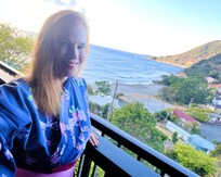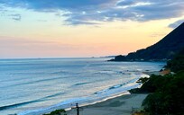 The balcony offers breathtaking views of the bay, and the beach is just a short walk away.