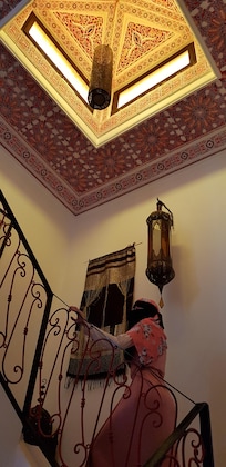 Beautiful riad in the southern part of old town. Really close to saadian tombs. You might find it awkwrd at first winding through the alleyways but once inside the riad is very comfortable and beautiful with a nice terrace and courtyard to relax in. The host Hussen made us very welcome by helping us out with questions, picking us up at 3 am from the main street outside when our airport transfer failed to show up because of flight delay. He cooked us a varied fresh breakfast everyday and was willing to go above and beyond. Nothing was too much to ask for. Housekeeping was very good. If you want to experience authentic Marrakech then this a really good riad to stay at. There are only 6 rooms so the staff are at your sevice when you need them. All the main attractions are within walking distance and there are many routes to djema al fna. Loads of restaurants and cafes nearby. There are also lots of mosques nearby, closest one being a min walk away. One peice of advice dont book the cheapest room as it is very tiny with no door between the bed and bathroom. All the other rooms are fine.