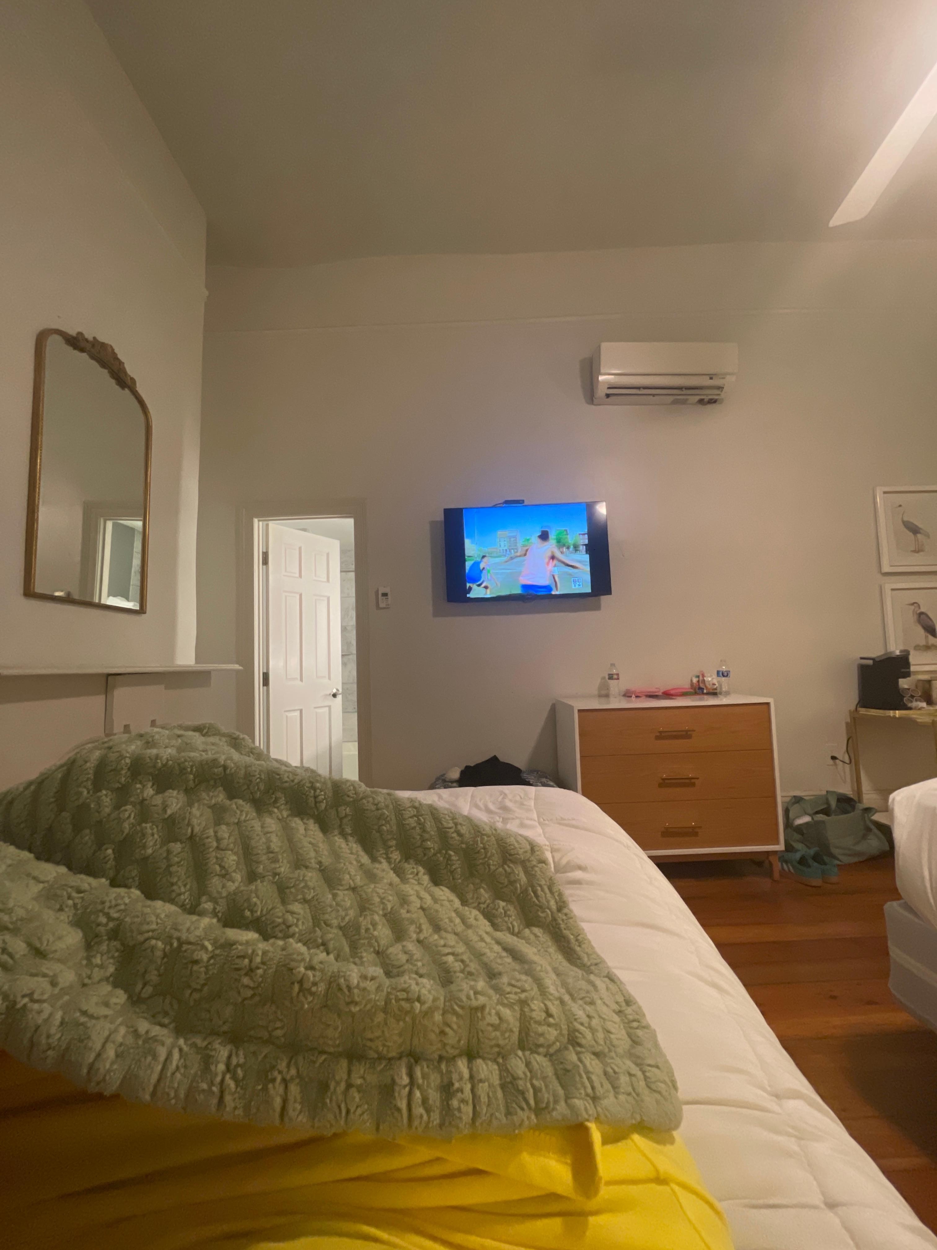 Overall nice property and we would stay again. We were in room 45 across the street from the Inn on Saint Ann. This is the supposed home of Marie Catherine Laveau who was a Louisiana Creole practitioner of Voodoo. Do to the age of the building, the stairs are very steep and narrow. And crooked, but we expected these things from an old historic apartment property. You need to note the phone number to call if you are locked out, since they don't have someone onsite often. We parked in a garage about 6 blocks away. Plan your parking before arrival. The room has a small fridge. The bathroom is large, but shower is very small. This room has a couch in the main area that folds out to a bed. Window units are used for cooling. It was clean-ish. Some reviews say it's haunted. The only "odd" thing is that we smelled smoke one night, but could not find anything on fire inside or outside.
