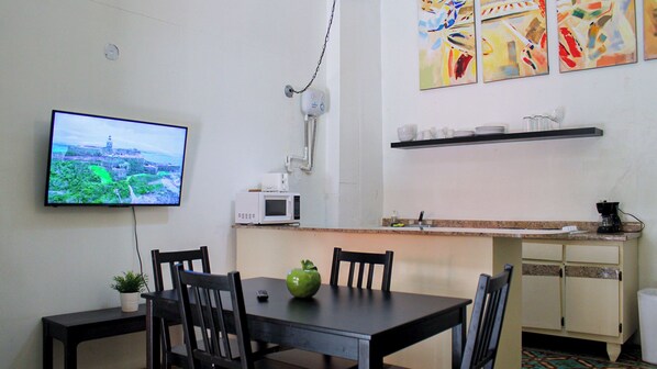 Apartment is dark with windows that face into a courtyard. Wifi stopped working. AC would not stick to the preset temperature. Parking instructions were complicated. The floor space in the building is shared with a restaurant kitchen that has a loud industrial fan and music playing through to 9pm. 3 separate keys open 3 different doors needed to get to the apartment from the street. Basic amenities like coffee were missing. The positive thing is that the location is right next to the central plaza so if that is your primary destination you can overlook all the downsides.