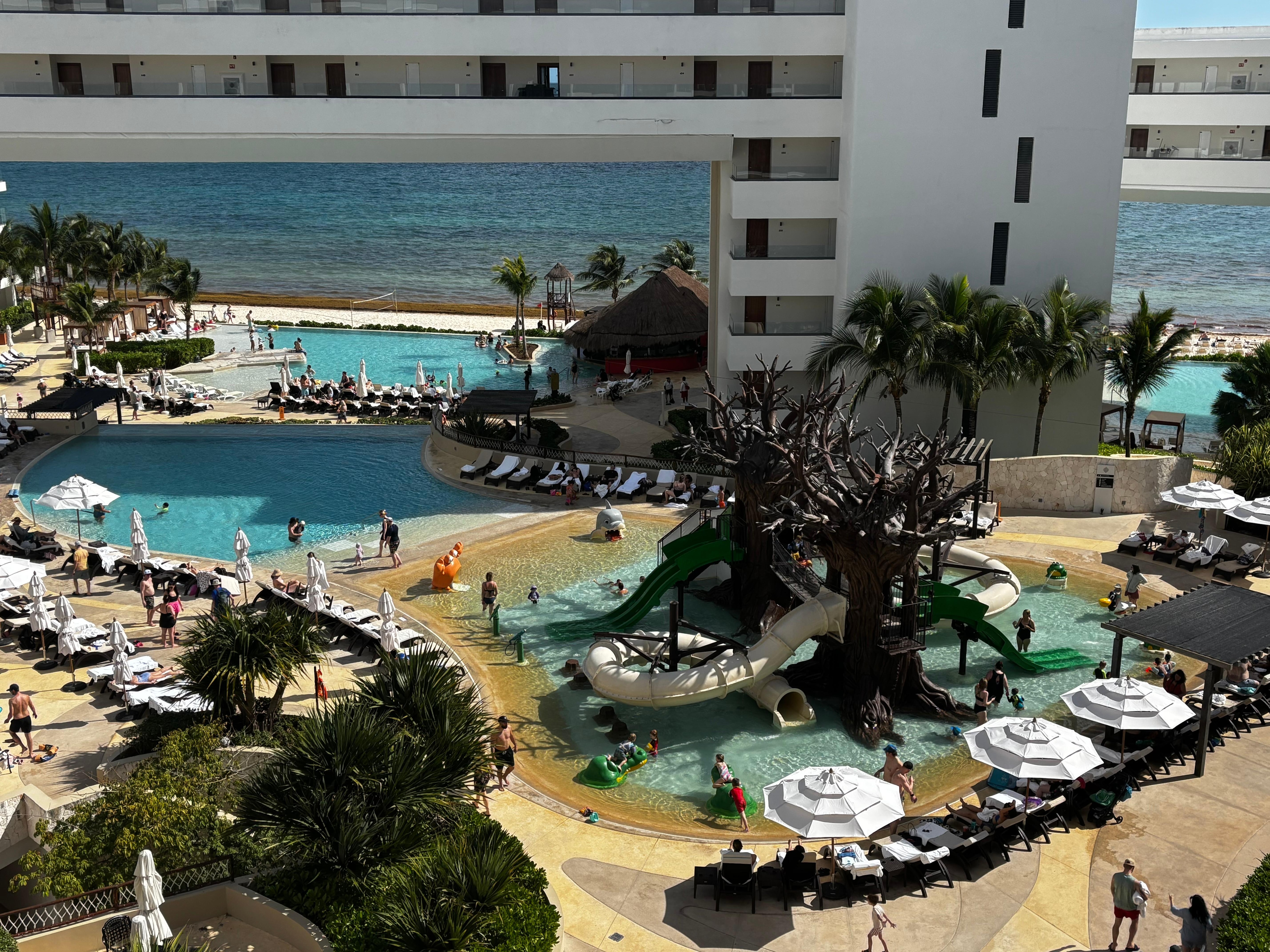 Families splash down waterslides, relax in cabanas, and savor delicious meals at La Pergola restaurant while soaking in spectacular views of paradise