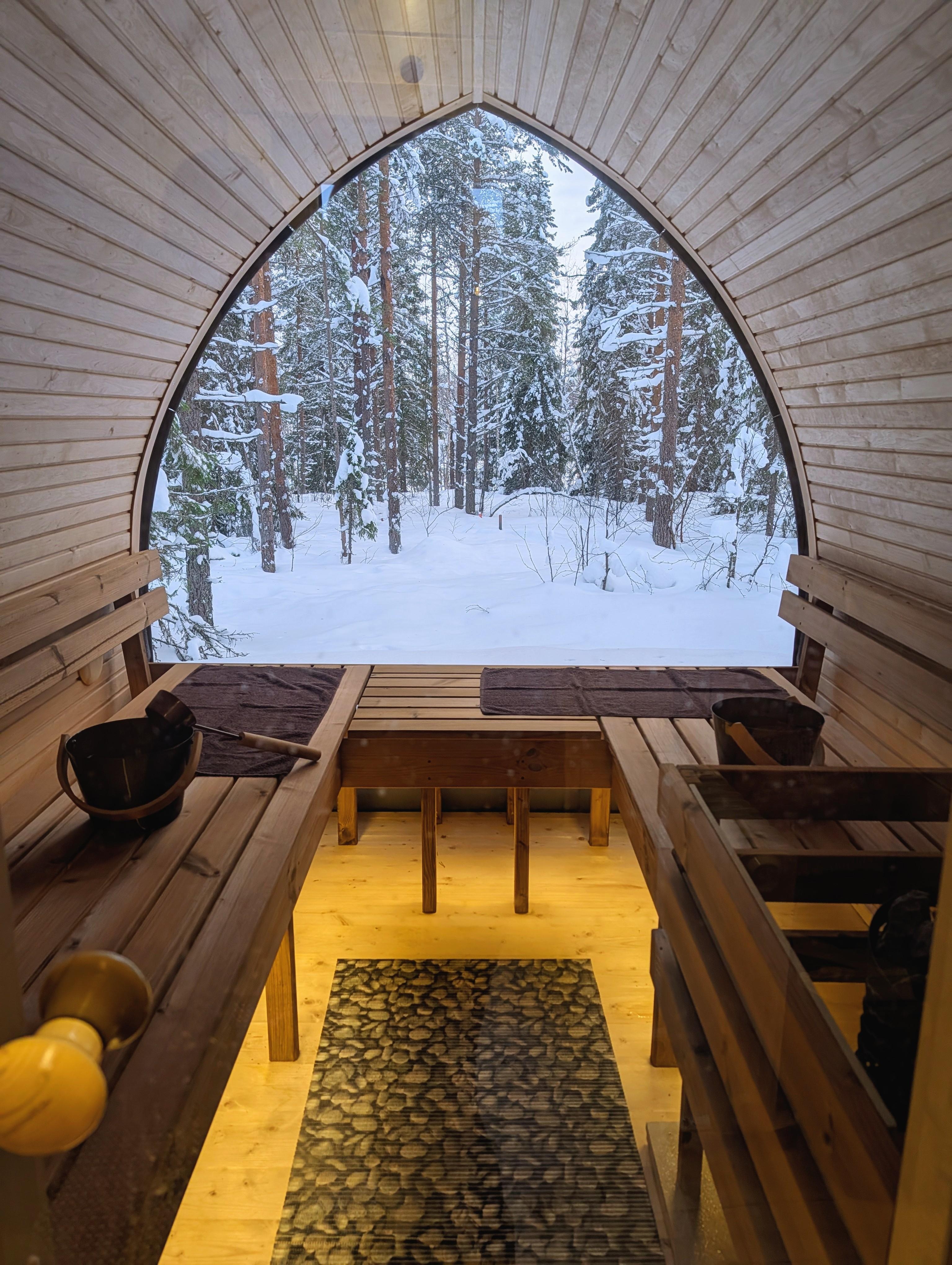 Truly amazing place for those who seeks privacy, wilderness and nature. Really enjoyed snowmobiles from the resort, dinner options in villa (liked the idea that we had possibility to try local meal) and of course huge villa just for two of us.