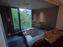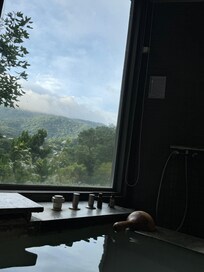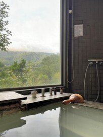客房的溫泉面對山景很舒服