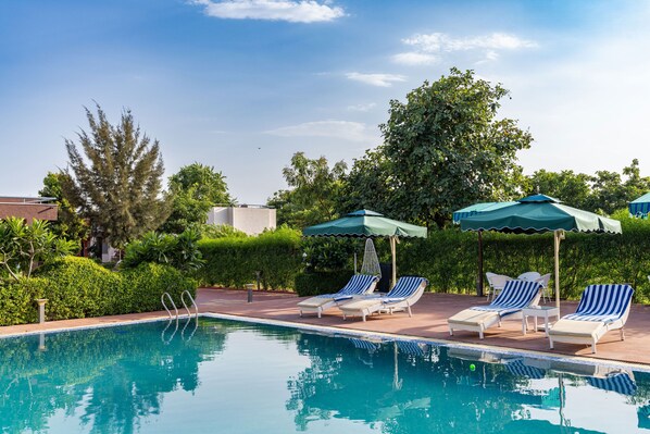 Vesta Avtar Resort Pushkar provides a quiet escape with its outdoor pool and comfortable sun loungers. Guests can take advantage of the daily manager's reception, access WiFi from their rooms, and explore both the nature reserve and 24-hour business center during their stay.