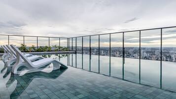 cleanliness Tranquil pool forms refreshing oasis at apartment near Flamboyant Mall, ideal after city explorations.