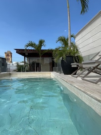 Yes, this property has an outdoor pool. Pool access is from 8:00 AM to 8:00 PM.