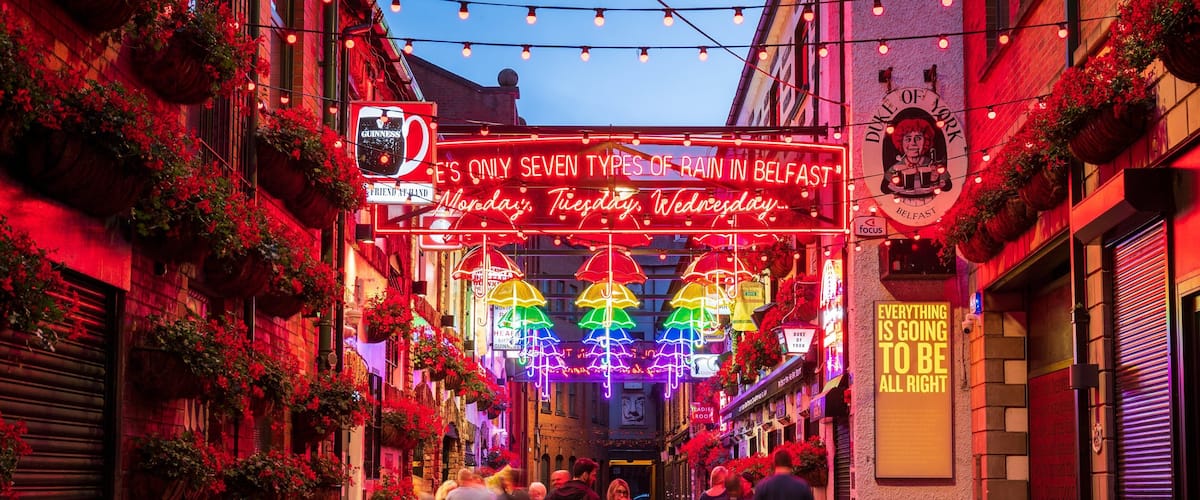 Cosy bars a university vibe and top sights from Crown Liquor Saloon to Grand Opera House – discover Belfast City Centre, a destination also famous for its shopping.
