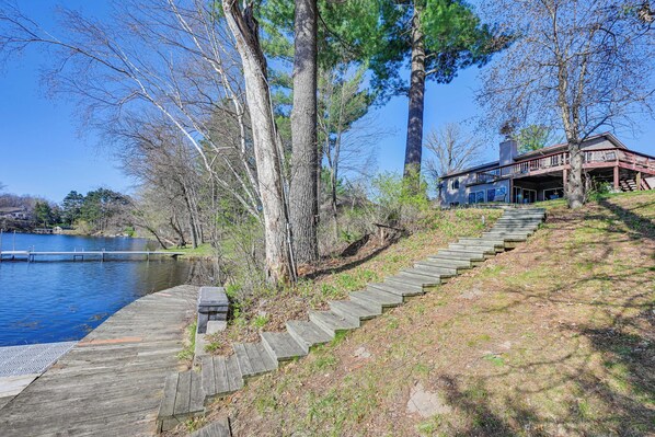 Lake Wissota Home w/ Private Dock + Fire Pit! provides amenities, such as a marina and a firepit. Guests can connect to free WiFi in public areas.