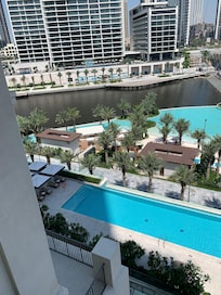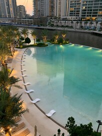 Guests refresh with a poolside dip or savor coffee with beautiful views at this Dubai Creek Harbour hotel where attentive staff ensures a seamless stay