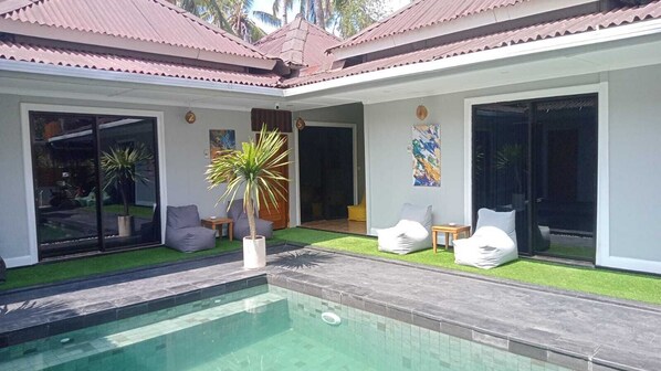 Bale Datu Bungalow offers a peaceful retreat in Gili Trawangan's natural setting. Guests enjoy a complimentary full breakfast, in-room WiFi, and an outdoor pool. The nearby nature reserve provides pleasant walking paths for afternoon exploration.