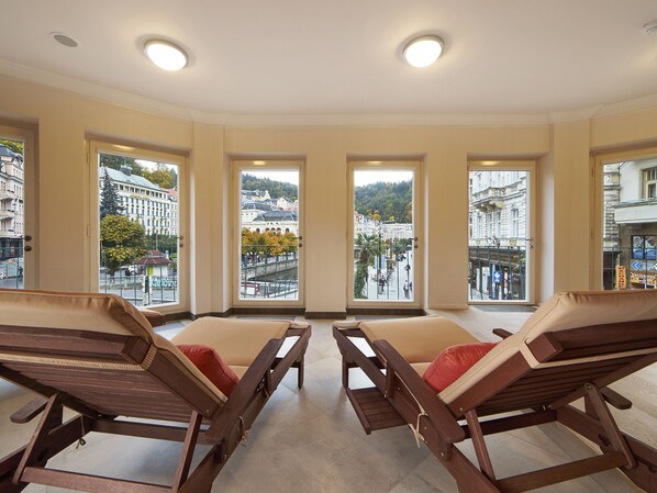 After exploring Prague's vibrant streets, travelers can return to the hotel's cozy bar for a drink or book a rejuvenating massage treatment