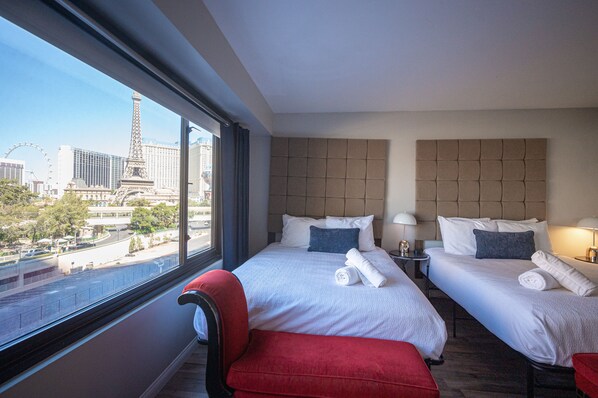 This apartment was absolutely PERFECT for our little family, kids ages 6,5,1,0…. Situated right on the strip walking distance 200m at most, so very convenient, especially when it came to the 1yr old as she struggled with the time difference! So we had daddy-daughter walks at 1am! (Got some really good photos at this time👍) The view from your room was amazing, and with very young children the view through their eyes to quote “it’s magical”! Helped a lot when it came to getting them ready to go out . Everything was clean and to a very good standard, having the kitchen really did come in handy as well. deuce bus is located at the entrance to the strip as well, so good transport links…. So many more positives I don’t know where to start, I just know that we have found our perfect apartment for our future stays and will not even entertain anywhere else 👌👌