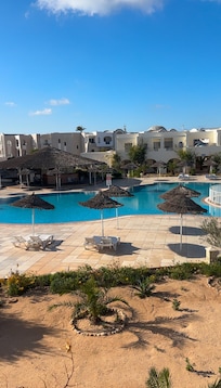 Perched on Djerba's sunny beaches, this hotel offers a breakfast buffet and coffee shop. Guests unwind at four pools or enjoy pampering treatments at Sun Spa. Two restaurants serve local cuisine, and free WiFi keeps everyone connected throughout their stay.