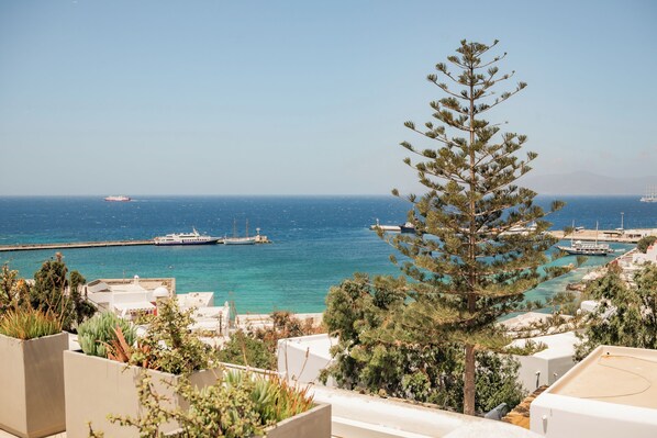 A good find. Value for money for a neat comfortable room with a terrace with sea view. Good location but up a steep hill to access, as are many places in Mykonos.