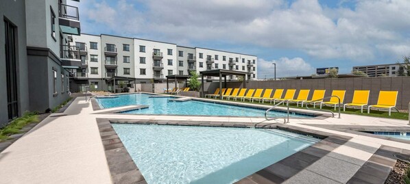 An outdoor pool, a fitness centre and a rooftop terrace are available at this smoke-free aparthotel. Free WiFi in public areas and free self parking are also provided. Additionally, coffee/tea in a common area and an arcade/games room are on-site. Each apartment provides a washer/dryer and a microwave, plus a stovetop and a Smart TV with digital channels. A coffee/tea maker, a dishwasher and a hairdryer are among the other amenities available to guests.