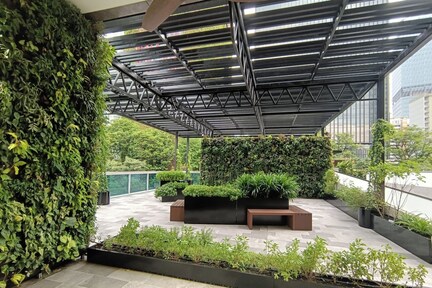Travelers find a peaceful escape from Singapore's urban energy in the lush garden or by the outdoor pool, where serenity awaits just steps away