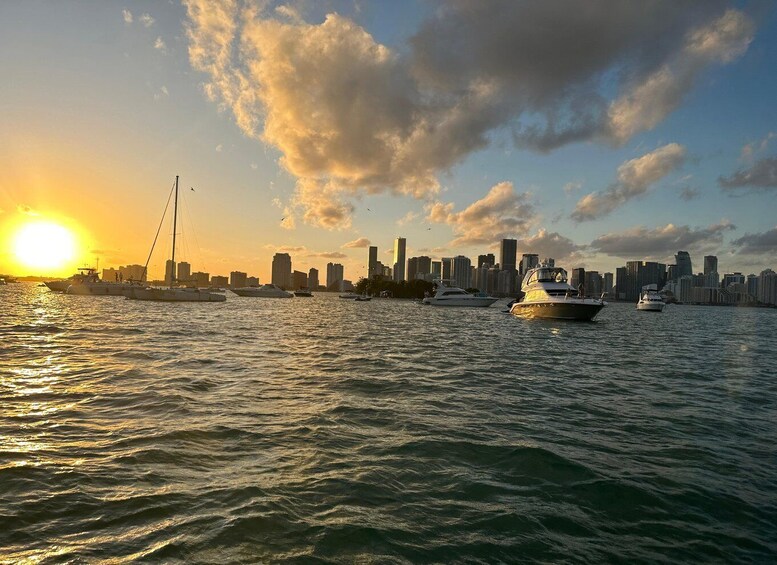 - Witness the dazzling Miami skyline and serene waters of Miami as the sun sets.