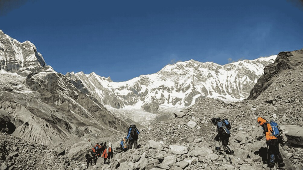 Trek via Machhapuchhre Base Camp (3,700 m) before reaching ABC, where you’ll spend the night surrounded by towering peaks.
