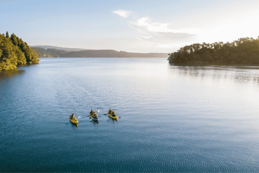Your journey with us begins at the Rotorua Information Centre in the centre of Rotorua, where you'll meet one of our amazing team. They'll welcome you aboard and set the scene for the evening ahead. After 25 minutes of getting to know one another in the shuttle out to the lake, you’ll get geared up and ready to kayak before heading down to the lake edge. We provide all the equipment and you’ll receive a thorough safety briefing tailored to you before we get afloat.