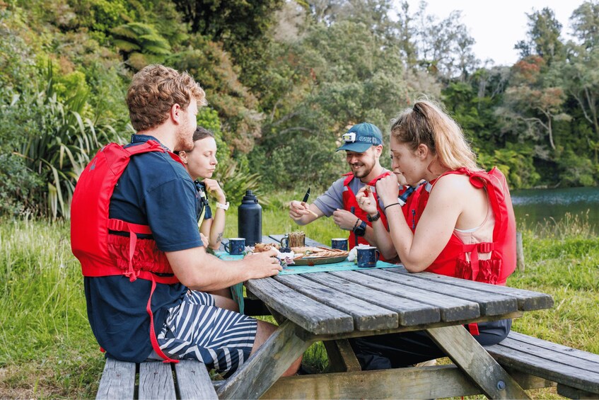 Once on the water, we'll glide across the lake and embrace the peaceful rhythm of paddling, taking in the beautiful shifting colours as daylight fades away. Our first stop is a secluded lakeside beach accessible only by water. Here, we'll hop out of our kayaks to enjoy some locally sourced kiwi treats and hot tea. It’s the perfect chance to relax, chat with each other and soak in the tranquility of the evening.