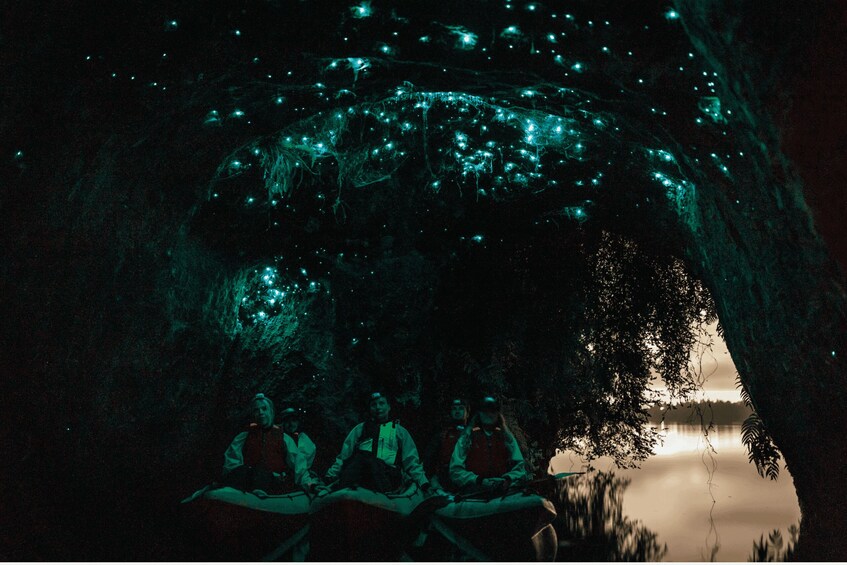 Refreshed and ready for more, we'll continue our paddle along the shoreline towards hidden caverns that come alive after dark. Inside these sheltered spaces, thousands of glow worms illuminate the walls, creating a surreal, star-like spectacle. Our guide will give you time to drift quietly beneath their shimmering light whilst answering all of your questions. We ensure our groups are small on purpose to make this one of the most intimate glow worm encounters in New Zealand.