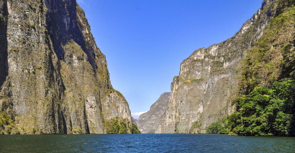 ต่อไปเราจะมุ่งหน้าไปยังท่าเรือเพื่อขึ้นเรือที่จะพาเราไปตามแม่น้ำ Grijalva อันยิ่งใหญ่ การเดินทางทางแม่น้ำนี้จะพาคุณลึกเข้าไปในหุบเขาที่ล้อมรอบไปด้วยหน้าผาสูงตระหง่านที่สูงถึงพันเมตร ลืมตาไว้ให้ดี คุณอาจเห็นจระเข้ ลิง และนกแปลกๆ ในแหล่งที่อยู่อาศัยตามธรรมชาติของมันได้ ประสบการณ์ที่คุณไม่อาจพลาด!