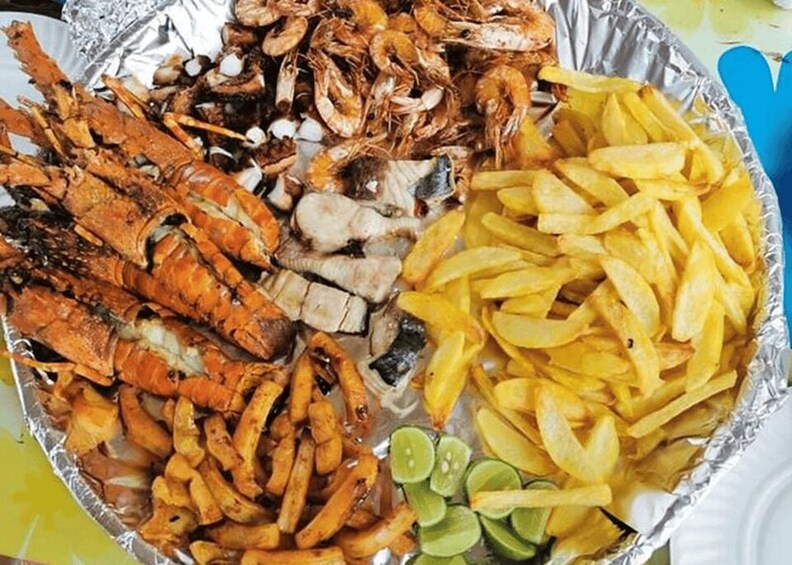 • Prons, Lobster, Octopus, Calamari, Tuna fish, French fries