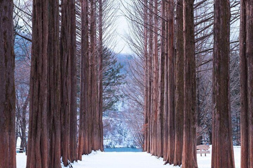 Next, visit Nami Island, with attractive landscapes and the beautiful filming location for the famous Korean drama “Winter Sonata.
