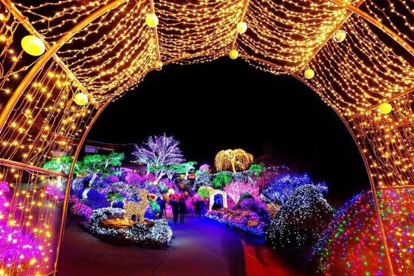 Choose either +The Garden of Morning Calm or +Gangchon Railbike package in the options. The Garden of Morning Calm: Enjoy a stroll at the oldest private garden in Korea. During the winter season, they will hold a light festival and you can enjoy the romantic display.