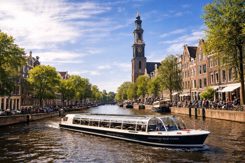 ขึ้นเรือ บนเครื่อง/เรือ เรือคลองไฟฟ้า 100% รุ่นใหม่ล่าสุดของเรา (มีหลังคาและระบบทำความร้อน) แล้วล่องไปตามลำน้ำที่สวยงามของอัมสเตอร์ดัมอย่างสะดวกสบายและมีสไตล์ ภายใน 75 นาที คุณจะได้ผ่านสถานที่สำคัญที่เป็นสัญลักษณ์ของเมือง ได้แก่ บ้านแอนน์ แฟรงค์ เรือบ้านที่มีเสน่ห์ โบสถ์ตะวันตก สะพานไม้แคบที่มีชื่อเสียง และสะพานเจ็ดแห่งที่สวยงามเหมาะแก่การถ่ายภาพ ซึ่งทั้งหมดนี้ตั้งอยู่ท่ามกลางสถาปัตยกรรมริมคลองอันเป็นอมตะของอัมสเตอร์ดัม