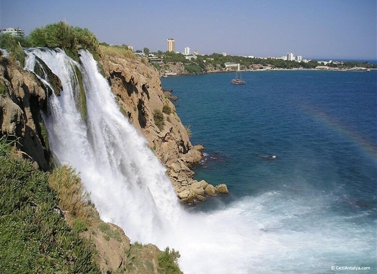 เยี่ยมชมท่าจอดเรือคาเลซี หรือที่รู้จักกันในชื่อโอลด์อันตัลยา สถานที่ที่เต็มไปด้วยประวัติศาสตร์และอาคารที่น่ารัก ชมบ้านเก่าที่สร้างขึ้นในสไตล์ออตโตมัน และจากสวนสาธารณะ เพลิดเพลินไปกับวิวผืนน้ำอันตระการตา ชมท่าเรือของเมืองเก่า ประตูเฮเดรียน และสถานที่ท่องเที่ยวที่น่าสนใจอื่น ๆ อีกมากมาย เพลิดเพลินกับการล่องเรือระยะสั้นเป็นเวลาหนึ่งชั่วโมง หลังจากเดินเล่นในเมืองเป็นเวลาสองชั่วโมง ตาม ไกด์ ของคุณไปยังจุดสุดท้ายของทัวร์ที่ Duden Kiyi Selalesi น้ำตกที่งดงามแห่งนี้อยู่ห่างจากทะเลเพียง 20 เมตร ดูว่าน้ำที่ไหลแรงบรรจบกับทะเลด้วยเสียงฟ้าร้องหรือเสียงดังและละอองน้ำได้อย่างไร