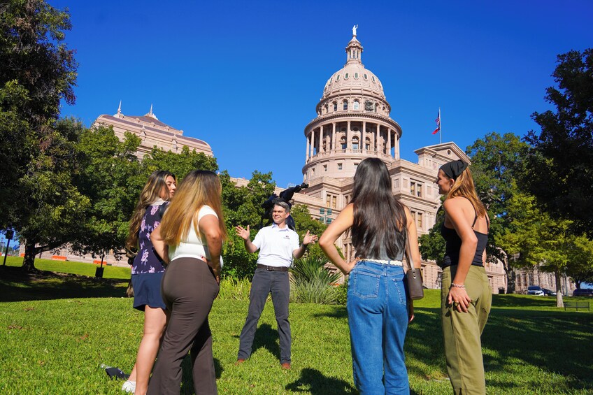 ทัวร์ของคุณเริ่มต้นด้วยการเยี่ยมชมศาลาว่าการรัฐเท็กซัส ซึ่งเป็นที่ตั้งของรัฐบาลของรัฐเท็กซัส อาคารสไตล์ฟื้นฟูเรอเนซองส์อันเป็นเอกลักษณ์ของอิตาลีแห่งนี้สร้างขึ้นระหว่างปี 1882 ถึง 1888 และเป็นศาลากลางของรัฐที่สูงเป็นอันดับ 6 ไกด์ ของเราจะพาคุณไปทัวร์พร้อมไกด์รอบๆ บริเวณ ซึ่งคุณสามารถชื่นชมวีรบุรุษแห่งอลาโม อนุสาวรีย์ทหารสมาพันธรัฐ และอนุสาวรีย์นักผจญเพลิงอาสาสมัคร รวมถึงอนุสาวรีย์และรูปปั้นที่โดดเด่นอื่นๆ