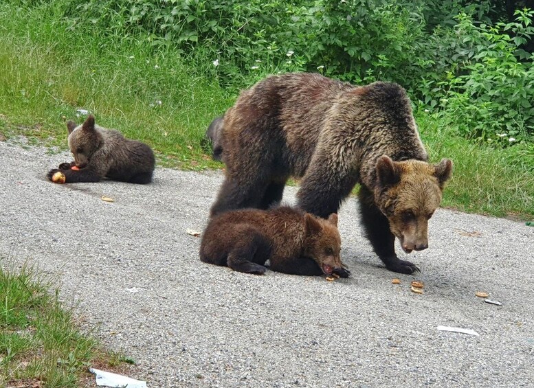 ใกล้เขื่อน Vidraru เป็นจุดสุดท้ายของวัน: หมีสีน้ำตาลป่า! คุณจะต้องทึ่งกับสัตว์แสนรู้เหล่านี้ที่พักผ่อนอย่างสงบอยู่ข้างถนน ในที่สุด คุณจะได้เดินทางกลับที่พัก จิตใจของคุณเต็มไปด้วยสถานที่ท่องเที่ยวที่น่าทึ่งทั้งหมดจากวันนั้น