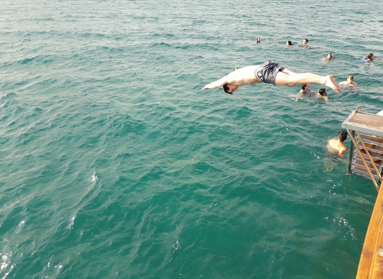 การล่องเรือในช่วงเช้าหรือเย็นเป็นเวลา 5 ชั่วโมงนี้จะพาคุณไปชมชายหาดที่สวยงามและสวยงามของ Cyrpus บนเรือยอทช์สุดหรู คุณจะออกจากท่าจอดเรือเวลา 10:30 น. และกลับเวลา 15:30 น. หรือ 18:00-23:00 น. ในทัวร์นี้ คุณจะสามารถหยุดพักและว่ายน้ำ อาบแดด และพักผ่อนตามอัธยาศัย หรือหากคุณเลือก คุณสามารถสัมผัสประสบการณ์โลกใต้ทะเลที่ยอดเยี่ยมพร้อมหน้ากาก ตีนกบ และท่อหายใจฟรี หรือเพียงแค่อิ่มอร่อยกับบุฟเฟ่ต์ไซปรัสอันหลากหลายและดับกระหายของคุณ กระหายน้ำบนดาดฟ้า