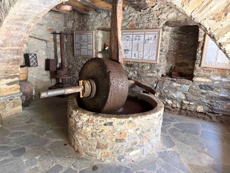 หากต้องการเดินทางอย่างลึกซึ้งยิ่งขึ้นสู่มรดกทางวัฒนธรรมของชาว Naxian ตัวเลือกแบบเต็มวันจะขยายกำหนดการเดินทางแบบครึ่งวันด้วยไฮไลท์เพิ่มเติมและเวลาเพิ่มเติมเพื่อเพลิดเพลินกับแต่ละจุดแวะพัก หลังจากสำรวจวิหาร Demeter, Damalas, Chalki, Filoti และ Apeiranthos แล้ว เดินทางต่อไปทางเหนือสู่ Apollonas หมู่บ้านริมทะเลที่มีชื่อเสียงในเรื่องรูปปั้น Kouros ขนาดใหญ่ที่ยังสร้างไม่เสร็จ วันนี้สิ้นสุดลงที่พิพิธภัณฑ์น้ำมันมะกอกในเมือง Eggares ซึ่งคุณจะได้ก้าวเข้าไปในห้องกดน้ำมันมะกอกแบบดั้งเดิม เรียนรู้เกี่ยวกับการผลิตน้ำมันมะกอกหลายศตวรรษ และชิมผลิตภัณฑ์ที่ผลิตในท้องถิ่น ทัวร์ขยายเวลานี้จะเปิดโอกาสให้คุณได้เพลิดเพลินกับมื้อกลางวันในร้านอาหารแบบดั้งเดิม และมีเวลาเดินเล่นมากขึ้น ซึ่งจะทำให้คุณได้สำรวจสมบัติทางวัฒนธรรมและธรรมชาติของเกาะอย่างครบถ้วน