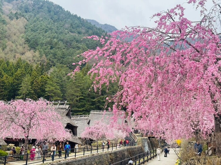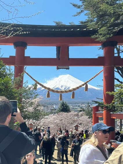 - ทัวร์นี้รวมการปีนบันไดที่สวนอาราคุระยามะเซ็นเก็น การมองเห็นภูเขาไฟฟูจิขึ้นอยู่กับสภาพอากาศและไม่มีการรับประกัน