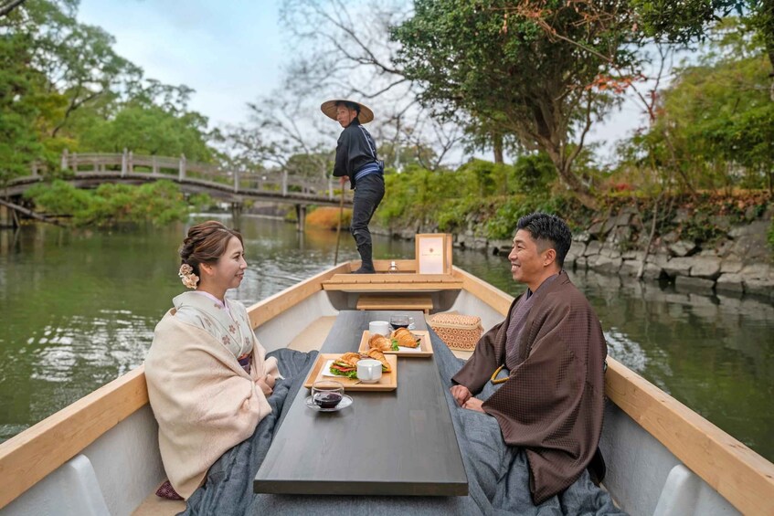 Meet your guide in Fukuoka and board the train to Yanagawa. Upon arrival, take a canal boat tour, known as “kawakudari.” Glide through the serene waterways on a traditional Japanese boat, while a local guide navigates and serenades you with folk songs.