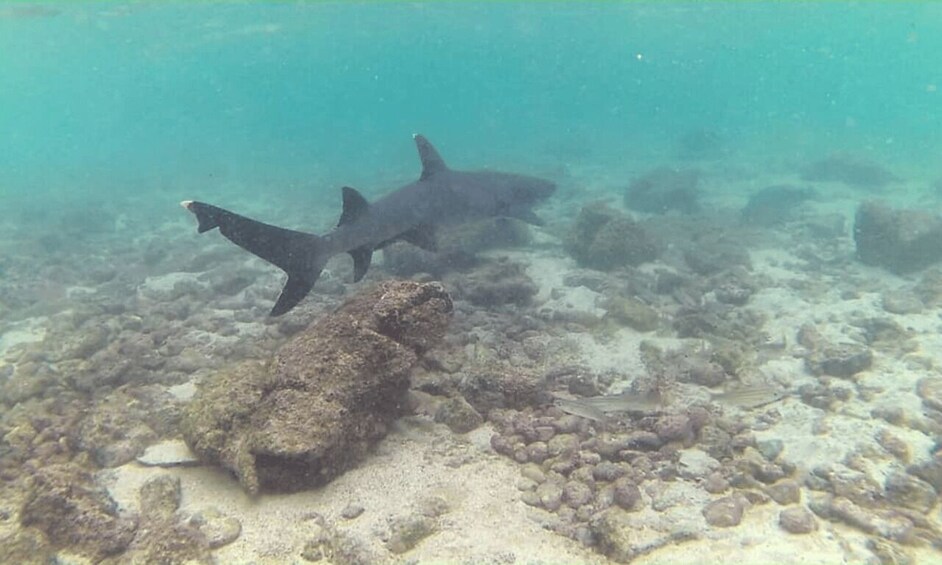 ในบรรดาสัตว์ที่เราพบนั้นมีฉลามอ่าวอยู่สองประเภท ได้แก่ ฉลามปลายขาว และฉลามปลายดำ