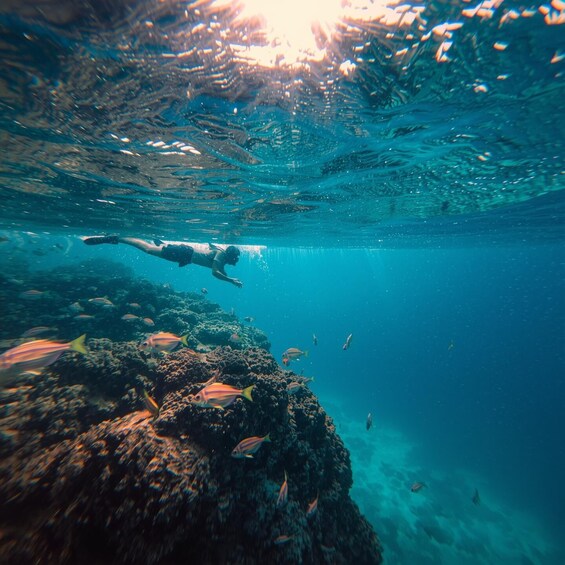 • มาถึงจุดดำน้ำตื้นที่สวยงามเพื่อว่ายน้ำไปพร้อมกับปลาเขตร้อน