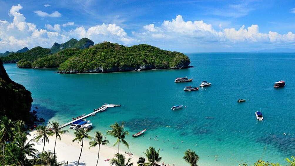 ปีนขึ้นไปบนจุดชมวิวด้านบนแล้วเดินชมทัศนียภาพอันงดงามของเกาะ 42 เกาะโดยรอบในอุทยานแห่งชาติทางทะเลอ่างทอง สำรวจภูเขาหินปูนสูงตระหง่าน ป่าหนาทึบ หาดทรายขาว และอ่าวที่ซ่อนอยู่ เยี่ยมชมเกาะวัวตาหลับซึ่งอยู่เหนือหาดทรายขาวสะอาดและอ่อนนุ่ม เยี่ยมชมถ้ำดอกบัวที่มีหินงอกหินย้อยที่สวยงาม เยี่ยมชมทะเลในทะเลสาบสีฟ้าที่มีน้ำสีเขียวมรกตสวยงามตามขั้นตอน เพลิดเพลินกับการว่ายน้ำ อาบแดด และดำน้ำตื้น เพลิดเพลินกับอาหารเช้ามื้อเบาและบุฟเฟ่ต์อาหารไทยมื้อกลางวันบนเรือ