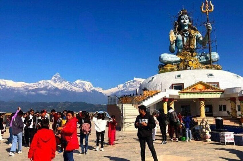 Visit the impressive Shiva statue in Pokhara, a peaceful spiritual site that honours Lord Shiva, the Hindu god of transformation and protection. From this spot, enjoy amazing views of the Annapurna and Machhapuchhre mountains, Phewa Lake, and the green hills of Pokhara Valley. It’s a perfect place to experience both natural beauty and spiritual calm.