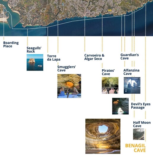 ออกเดินทางประมาณ 3 ชั่วโมงจากท่าจอดเรือ Portimão ดื่มด่ำกับทัศนียภาพชายฝั่งทะเลสีทอง ผ่านเมือง Carvoeiro และสำรวจถ้ำ Benagil ที่มีชื่อเสียง