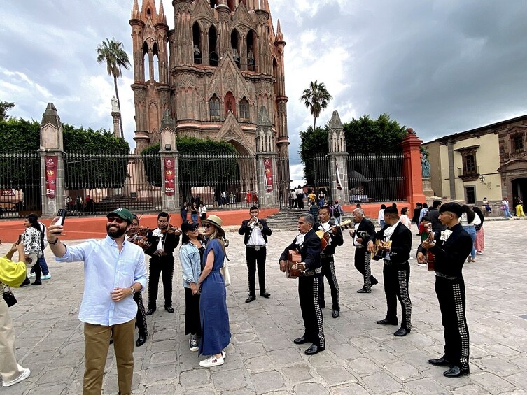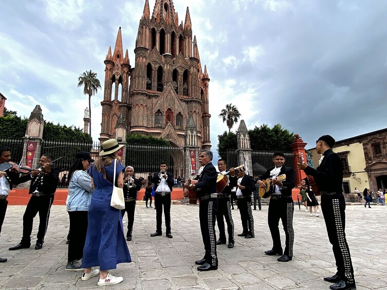 ทัวร์เดินชมเริ่มต้นที่ Parroquia de San Miguel Arcángel ซึ่งเป็นโบสถ์หินทรายสีชมพูอันน่าทึ่งของเมืองที่มีลักษณะคล้ายมหาวิหารในยุโรป การออกแบบแบบนีโอโกธิกและยอดแหลมที่สูงตระหง่านทำให้โบสถ์แห่งนี้เป็นหนึ่งในโบสถ์ที่ถ่ายรูปมากที่สุดในเม็กซิโก จากนั้นคุณจะมุ่งหน้าไปที่โบสถ์ซานตาคาซา ซึ่งเป็นอาคารสวยงามอีกแห่งที่มีประวัติศาสตร์อันยาวนานและบรรยากาศที่เงียบสงบ ต่อไปเราจะไปเยี่ยมชมโบสถ์ซานฟรานซิสโก ซึ่งเป็นอาคารสไตล์บาร็อคที่ให้ความรู้สึกถึงประเพณีทางศิลปะและสถาปัตยกรรมของเม็กซิโกในยุคอาณานิคมอย่างไม่ซ้ำใคร จากนั้นทัวร์จะพาคุณไปที่บ้านของ Allende ซึ่งเป็นบ้านเกิดของ Ignacio Allende ผู้เป็นวีรบุรุษผู้ผลักดันอิสรภาพของเม็กซิโก ที่นี่คุณจะได้เรียนรู้เกี่ยวกับชีวิตและมรดกของเขาขณะสำรวจการตกแต่งภายในที่ได้รับการอนุรักษ์ไว้อย่างสวยงามของอาคารประวัติศาสตร์แห่งนี้