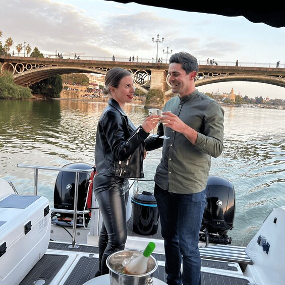 เดินโรแมนติก 1 ชั่วโมง ล่องเรือไปตามแม่น้ำ Guadalquivir พร้อมดื่มไวน์หนึ่งขวด ชมสถานที่อันเป็นสัญลักษณ์ของเซบียาที่ส่องสว่างในเวลากลางคืนและเพลิดเพลินกับความงามของเมือง