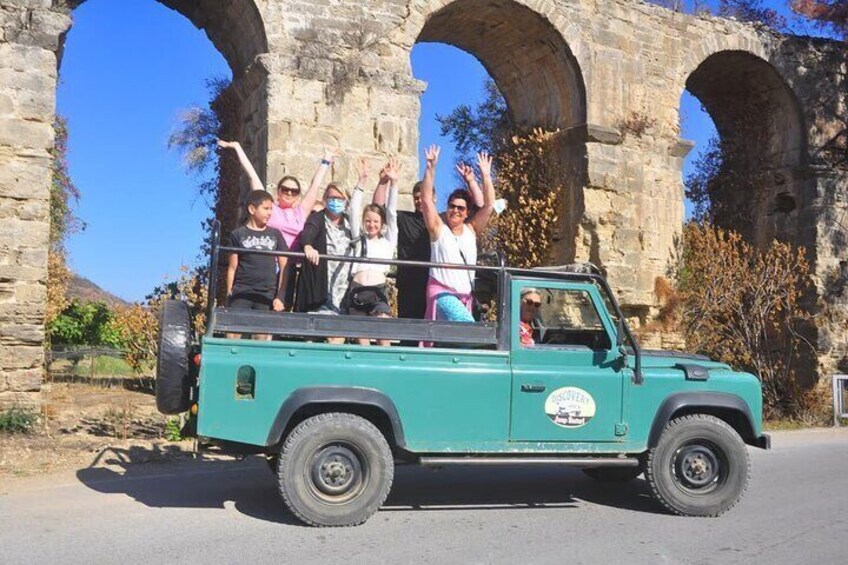 Explore the stunning Taurus Mountains and the Oymapinar Dam on this captivating Jeep safari designed for families. Begin your day with a scenic pick-up in a Land Rover Defender and marvel at the beauty of Manavgat Waterfall. Experience thrilling off-road adventures, visit ancient Roman aqueducts, and enjoy a refreshing break with local Turkish pancakes. Engage in exciting water battles as you journey to the breathtaking Green Canyon, where you can enjoy panoramic views. A delicious lunch featuring chicken or fish awaits at a local restaurant, followed by fun at a mini aqua park. Conclude your day with a cultural visit to a local mosque before returning to your hotel.
